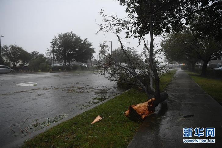 9月14日,在美国北卡罗来纳州威尔明顿市,一棵树的枝干在暴风雨中折断。 新华社记者刘杰摄