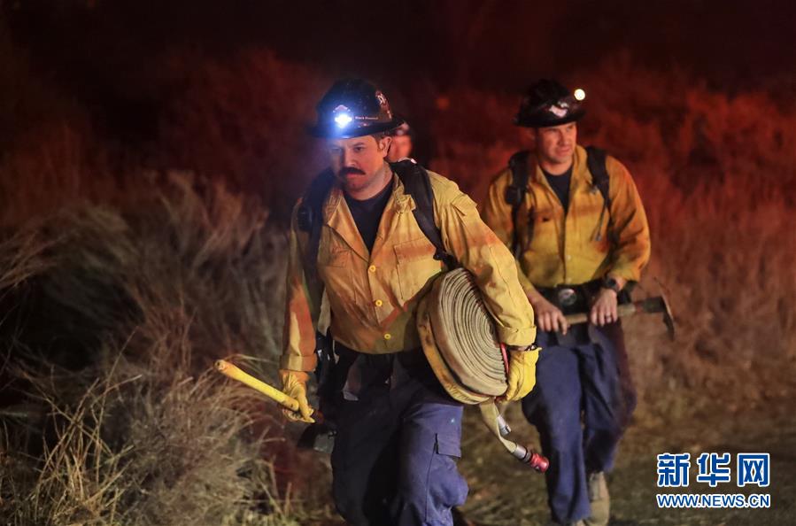 10月30日,在美国加利福尼亚州富勒顿市,消防员在火场工作。近日,美国加利福尼亚州山火持续肆虐,大量居民被迫撤离。新华社记者 李颖 摄