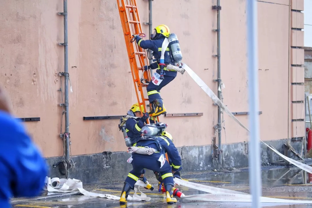 此外,楼层火灾内攻、枪炮协同灭火、纵深灭火救人等都是结合实战而设的项目,重点检验消防员精准实施阵地设置、水带延伸、交替掩护、梯次进攻、强攻近战等技战术水平。