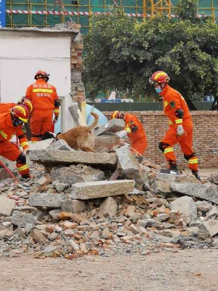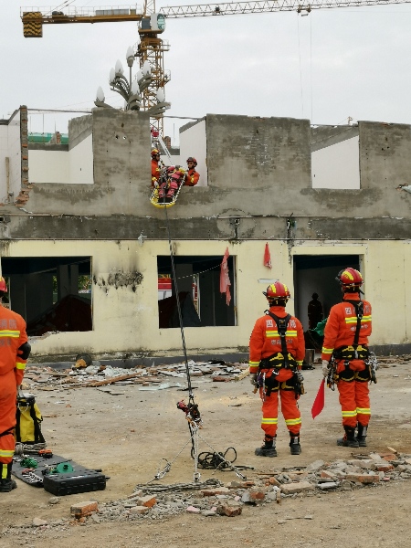 记者在室外模拟搜救现场看到,消防应急救援队员在一排摇摇欲坠的房屋中开展搜救工作,他们以专业的救援技术水平及不辞辛苦忘我的敬业精神,让受灾群众和百姓的生命健康和财产得到了及时有效的最大保障和维护。无论是高处楼房救人还是地面钻墙打洞营救或者废墟搜救,都展现了应急消防队伍的平时训练有素和不同于常人的过硬本领。
