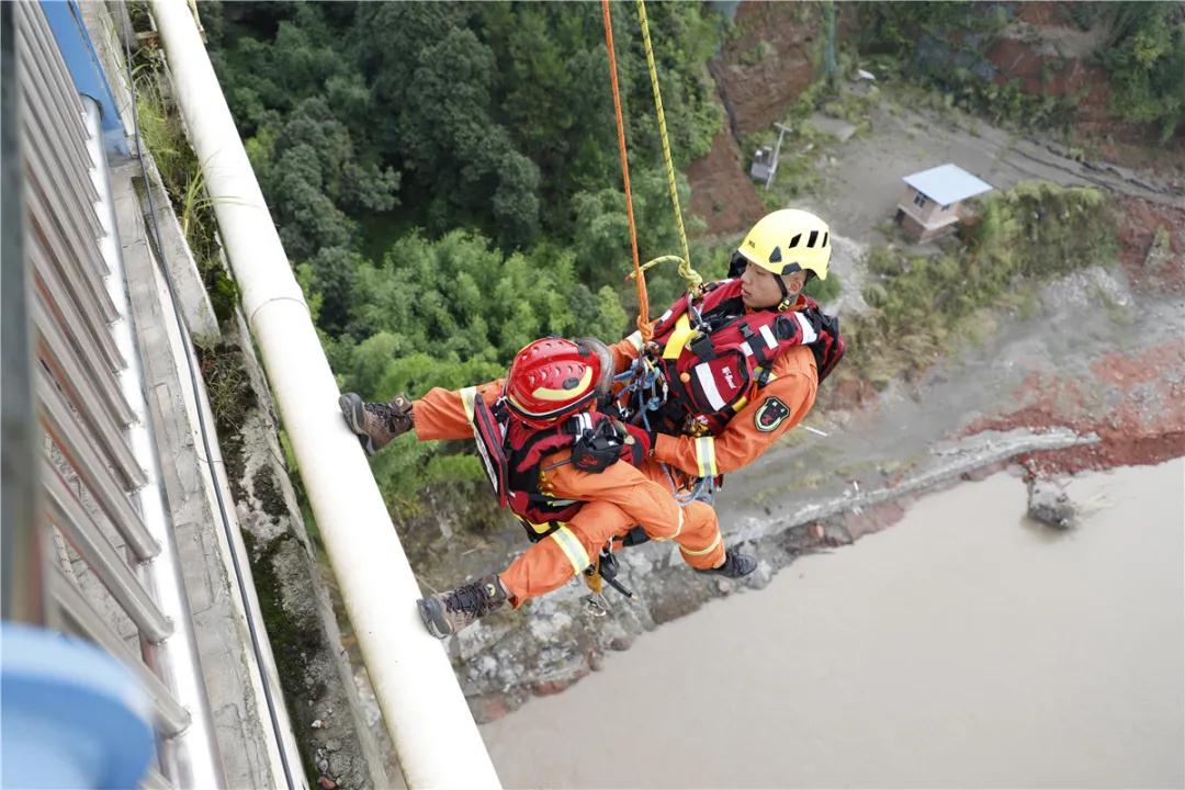 此科目设置充分考虑了水流湍急舟艇固定难度大,垂直速降与提升高差超过70米等因素,在最不利条件下完成救援任务的可能性,充分检验了指战员舟艇驾驶和绳索高空救援的能力。