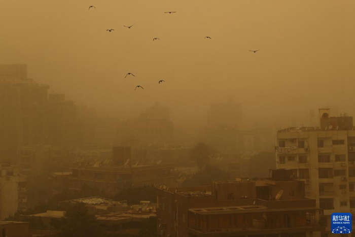 当日下午,埃及首都开罗遭遇沙尘暴袭击,城市笼罩在漫天黄沙中,能见度较差。