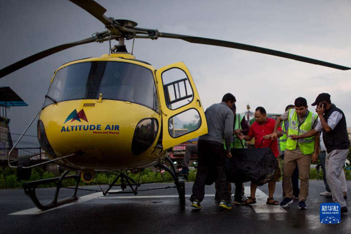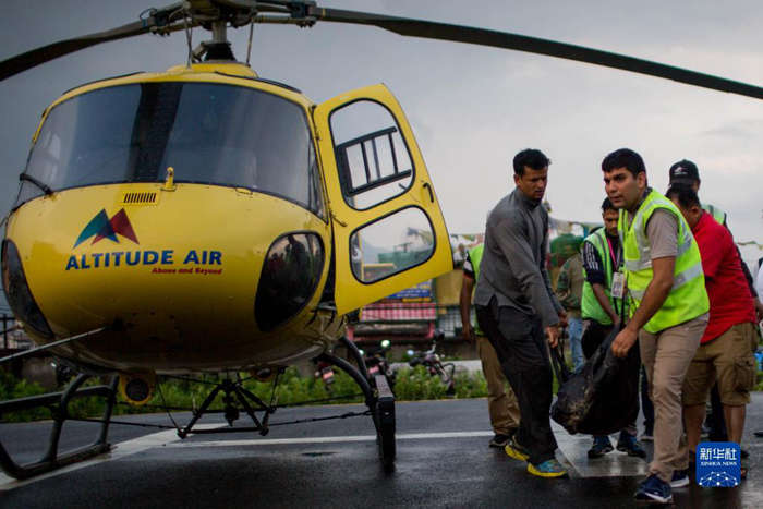 7月11日,载有坠机事件遇难者遗体的直升机抵达尼泊尔加德满都。