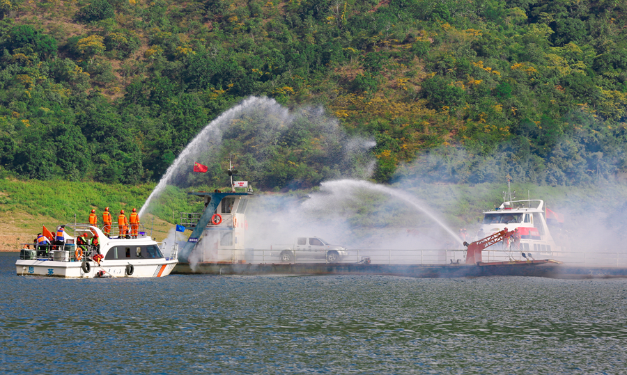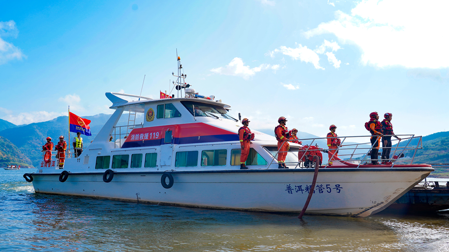 近日,云南省普洱市消防救援支队参加由普洱市人民政府和云南省交通运输厅主办的2023年糯扎渡库区水上搜救综合应急演练。