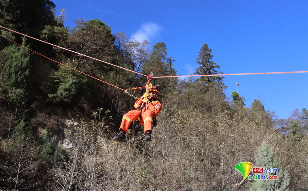 赵英希正在进行绳索训练。波密森林消防中队供图