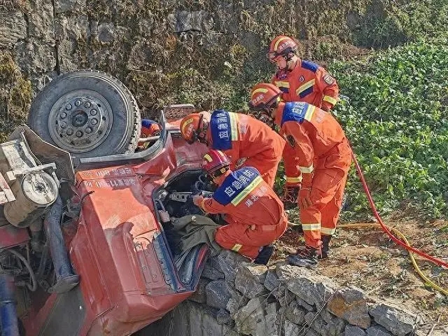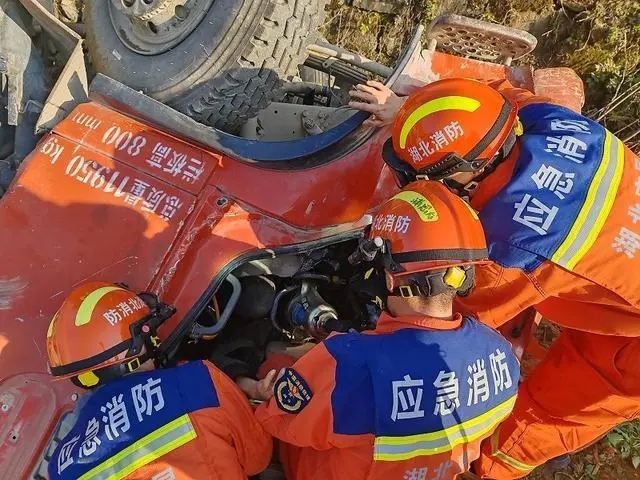 接到报警后,兴山县消防救援大队立即出动1车7人前往处置 ,消防救援人员抵达现场后发现,货车侧翻在马路旁的田地里,车头和驾驶室车门严重变形,被困男子的腿部被凹陷的车头和座位死死卡住,无法动弹。