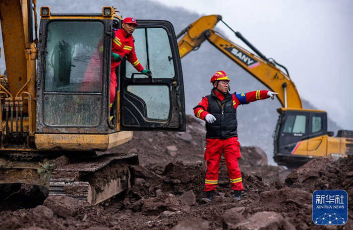雪花飘飞,寒风凛冽。新华社记者在救援现场看到,搜救工作持续进行,一台台挖掘机有序开展作业,各方救援力量紧密协作,全力攻坚克难。