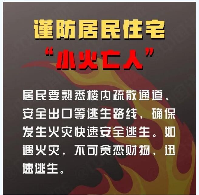 什么是“小火亡人”?“小火亡人”究竟是怎样发生的?我们又该如何预防“小火亡人”的悲剧发生?记住以下这些消防安全要点,警惕“小火亡人”事故的发生。 详情>>